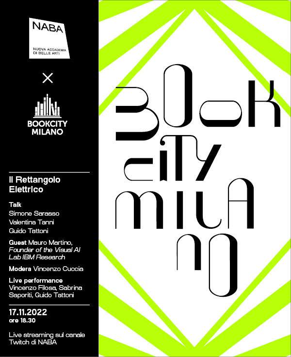 As part of BookCity Milano 2022, this talk explored the intersection of artistic practice, new media, and artificial intelligence. Hosted within NABA’s Media Design and New Technologies department, the discussion focused on Il Rettangolo Elettrico, a project that transforms the traditional book into a multimedia experience, combining visual and sonic media to investigate AI-driven creative processes.